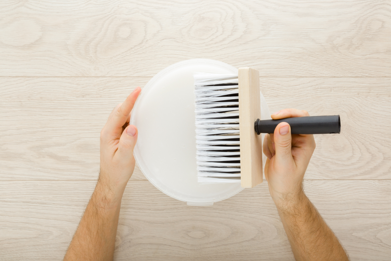Кистью или валиком наносите состав от центра к краям. Избегайте излишков! Края оставляйте сухими на 2 см.